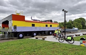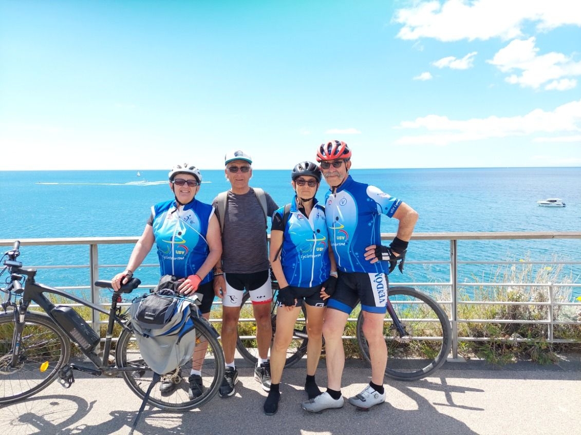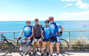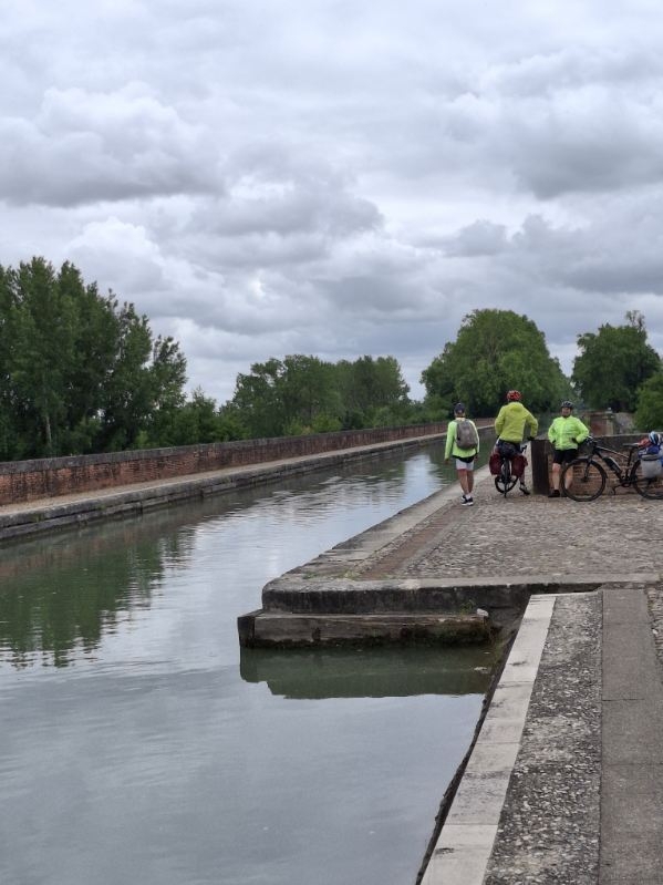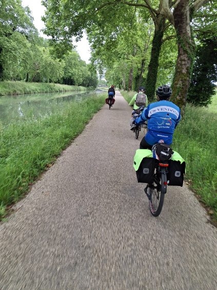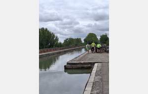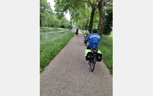 Partis le 27 mai d'Agen sur le canal entre-deux mers, 4 cyclos, Gigi, Cécile, François et Dominique rejoignaient Toulouse à vélo. Alors, commence le Canal du Midi avec ses 240 km, 350 ouvrages d'art dont 63 écluses, 126 ponts, 55 aqueducs et 7 ponts-canaux. Les chemins de halage sont parfois caillouteux avec des petits raidillons. Nous prenons la direction de Castelnaudary pour déguster un bon cassoulet, nous l'avons bien mérité.Nous passons dans les vignes du Minervois où notre hôte nous a mis un rosé au frais. Le lendemain, direction Carcassonne et la visite de sa belle cité. Le Somail où se sépare les deux canaux, puis Béziers avec ses 9 écluses et son systéme de huit sas, Vias plage et les ouvrages du Libron qui se jette dans la Méditerranée. Enfin le 2 juin nous arrivons à Séte où finit le Canal du Midi. 500 km, environ 75 par jour, très enthousiasmés par notre périple avec ses rencontres insolites, des centaines de cyclistes et beaucoup d'interpellations dues à notre maillot " Vendôme". Prêts à repartir pour un nouveau défi. Gigi