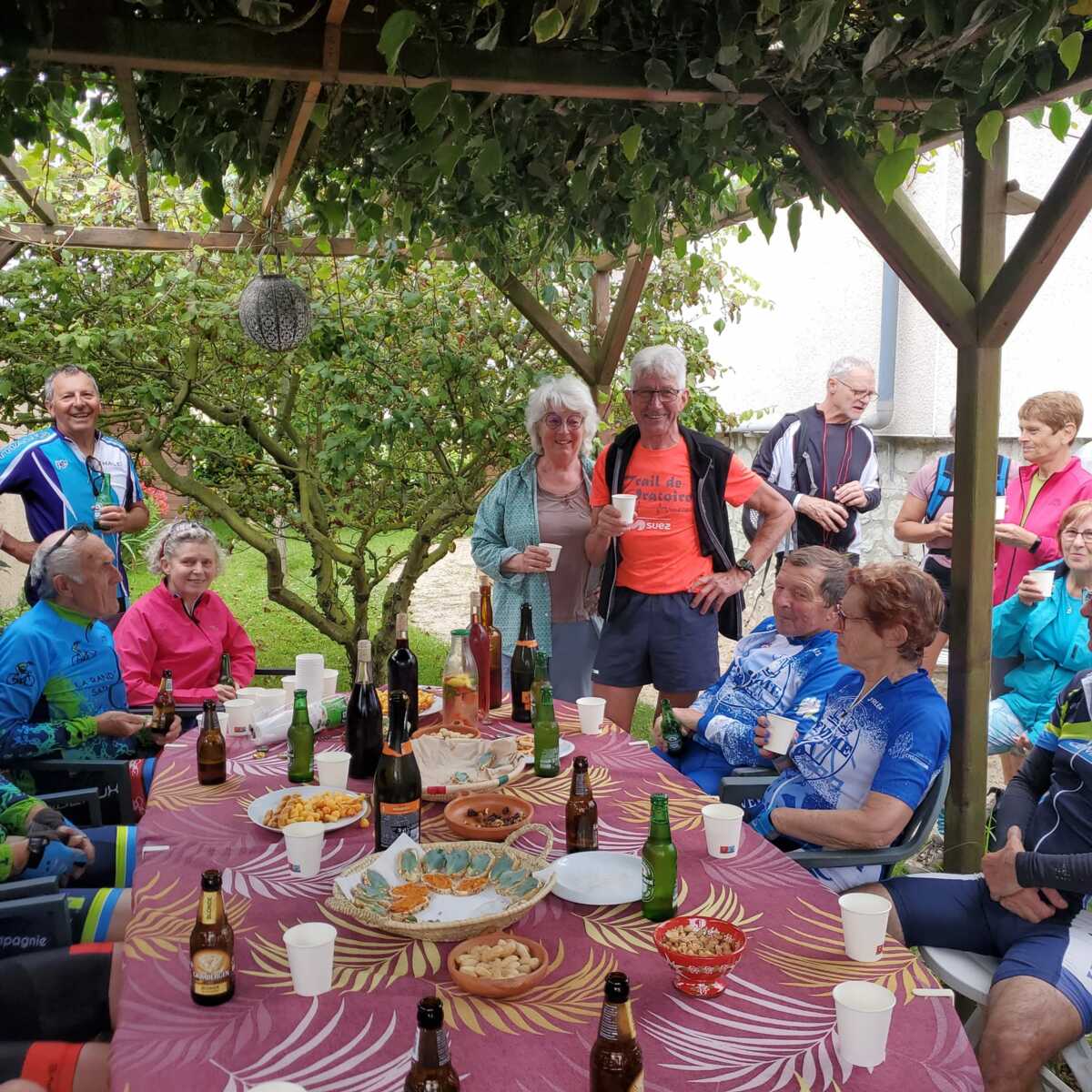 Belle journée encore ce mardi 2 juillet 2024, 21 cyclos sont là pour se retrouver et rouler. Notre "chef " décide du parcours, mais à 11h30 nous devons arriver chez Daniel, un petit Noûr est né et les heureux grands-parents veulent fêter cette arrivée. Chose faite, et nous pensons que le petit bout'chou va bien pousser. M.Jo
