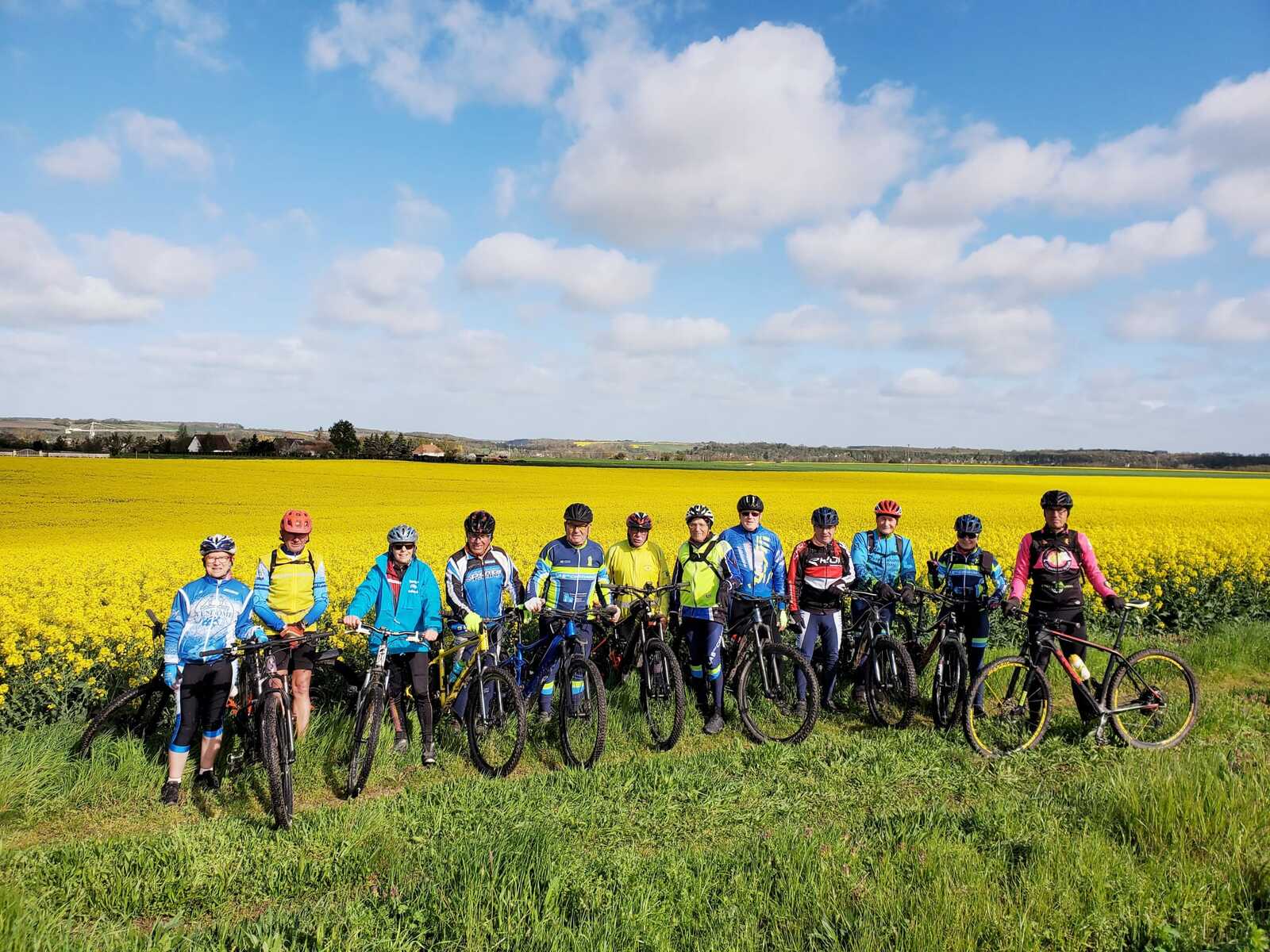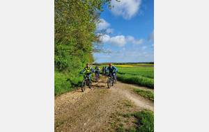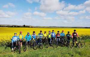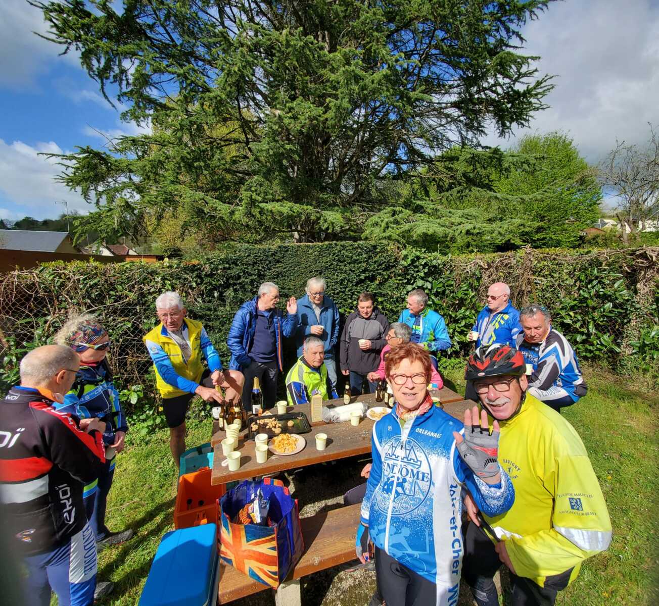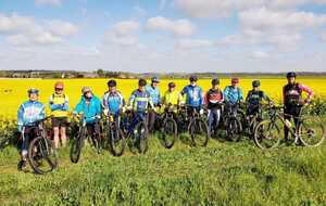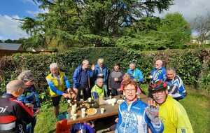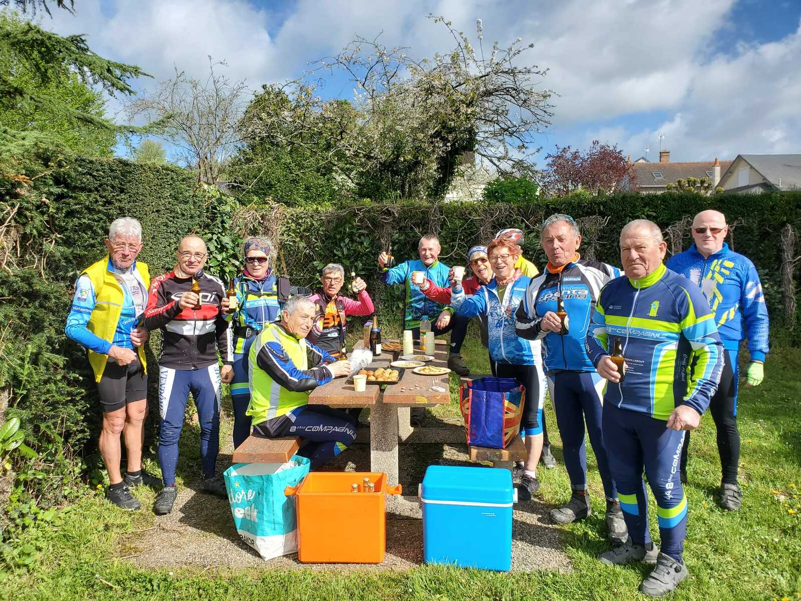 Il fait un peu frisquet ce matin, le vent est très fort et glacial. Nous sommes le 9 Avril et nous avons deux anniversaires à fêter ce midi donc tous les copains sont là. Nous partons, direction Naveil, les côtes au programme, nous réchauffent. Une crevaison nous arrête un long moment, en plus c'est J.Louis, pour son anniversaire il est gâté. La campagne est belle, beaucoup de champs de colza ,que du jaune autour de nous, le soleil les illumine encore plus. C'est un plaisir de rouler parmi ce décor. Onze heures trente nous arrivons à Courtiras tout est prêt pour fêter nos amis, Annie, Serge et Christian nous rejoignent pour lever nos verres dans la rigolade et la bonne humeur. Belle matinée. M.Jo