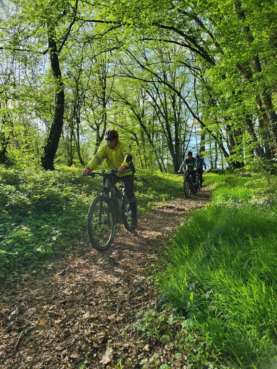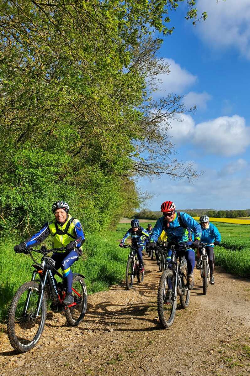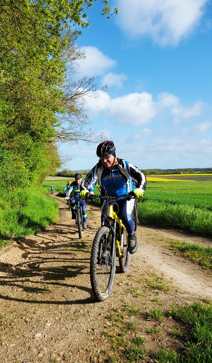 Il fait un peu frisquet ce matin, le vent est très fort et glacial. Nous sommes le 9 Avril et nous avons deux anniversaires à fêter ce midi donc tous les copains sont là. Nous partons, direction Naveil, les côtes au programme, nous réchauffent. Une crevaison nous arrête un long moment, en plus c'est J.Louis, pour son anniversaire il est gâté. La campagne est belle, beaucoup de champs de colza ,que du jaune autour de nous, le soleil les illumine encore plus. C'est un plaisir de rouler parmi ce décor. Onze heures trente nous arrivons à Courtiras tout est prêt pour fêter nos amis, Annie, Serge et Christian nous rejoignent pour lever nos verres dans la rigolade et la bonne humeur. Belle matinée. M.Jo