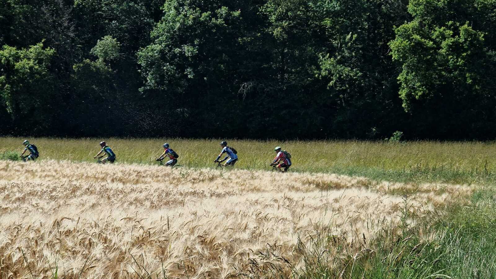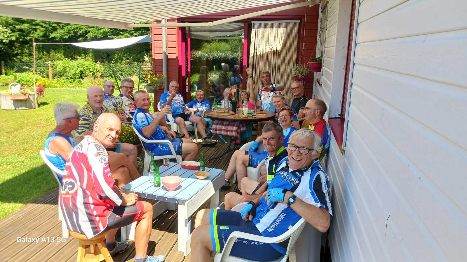 Beaucoup de monde ce matin au rendez-vous VTT le soleil a fait sortir tout le monde du lit. Christian improvise une rando qui sera très sympathique. Nous retrouvons encore des passages très gras et surtout des hautes herbes qui sont glissantes et qui provoqueront des chutes. Pas de gravité mais toujours l'inquiétude quand on voit un cyclo à terre. Le midi nous nous arrêtons chez Danièle qui nous offre un pot. Nous en profitons pour mettre au point notre rendez-vous de ce soir pour mettre à l'honneur notre Gégé photograhe.