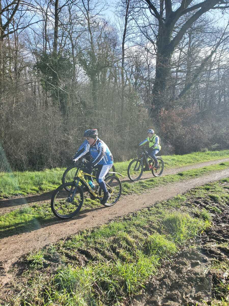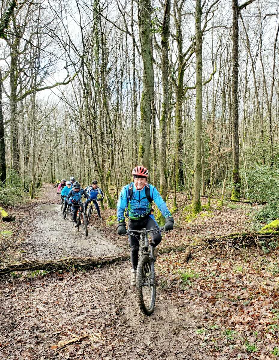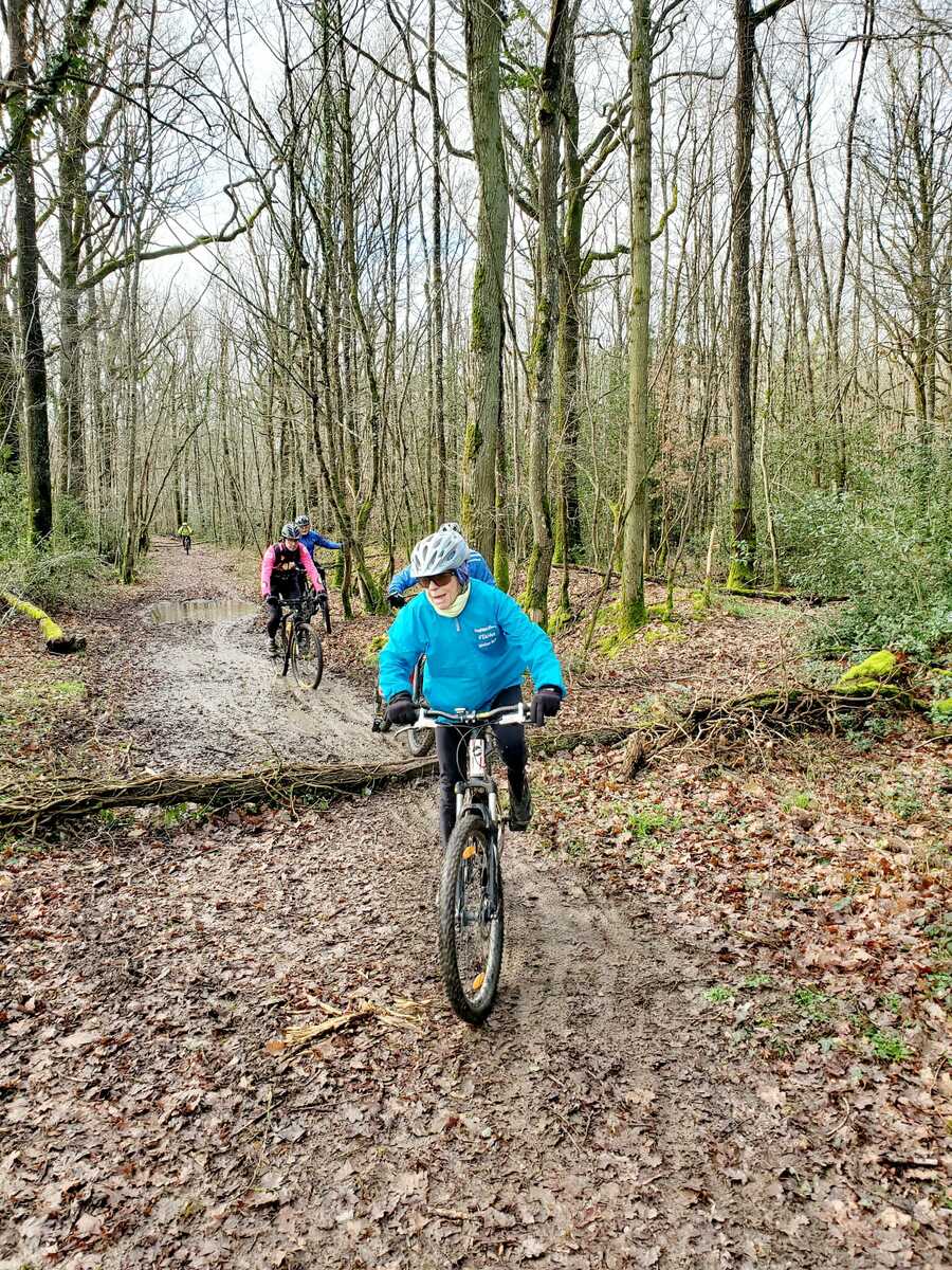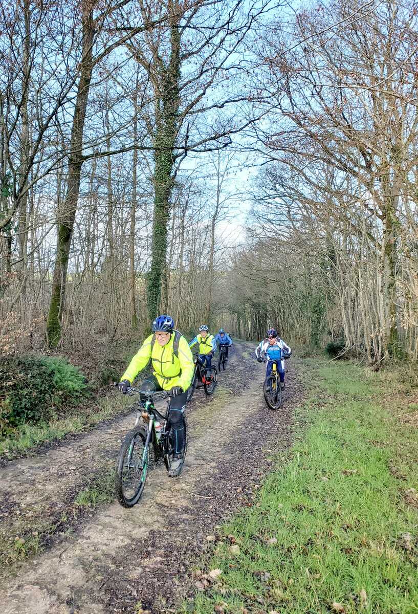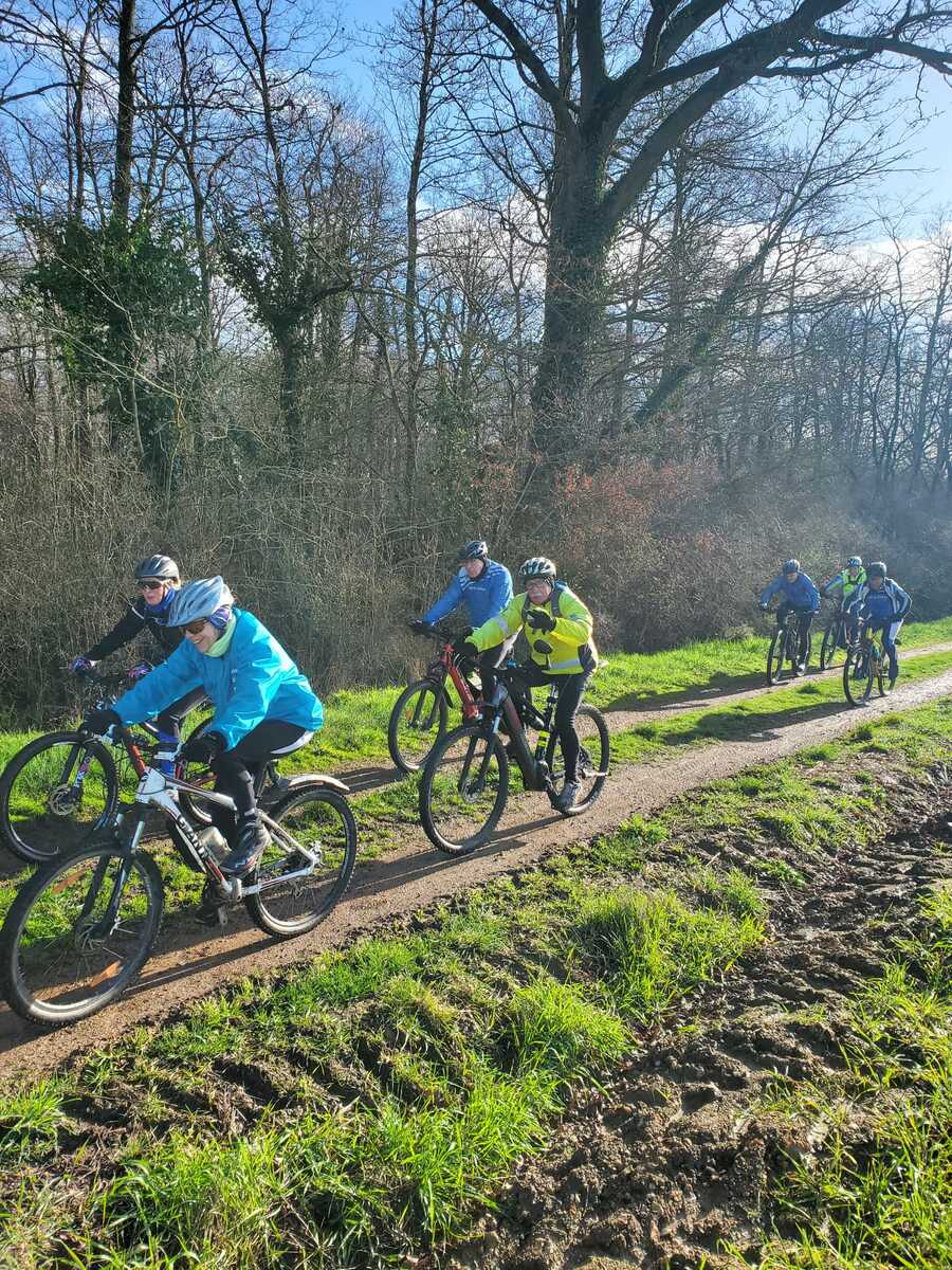 Du soleil ce matin et 18 vététistes au RDV. Une belle balade dans la boue et les flaques ; beaucoup de glissades sur ce terrain bien gras et un finish, tous bien crottés, chez Alain pour lever notre verre à son anniversaire dans la joie et la bonne humeur. Nicole.