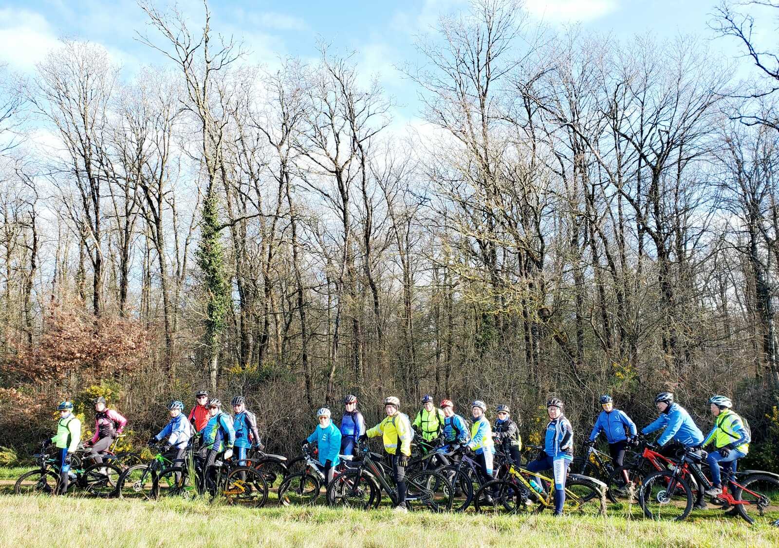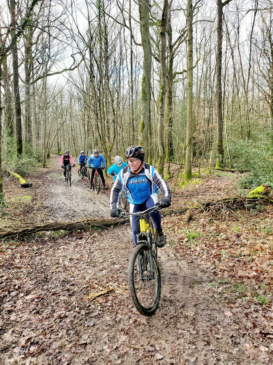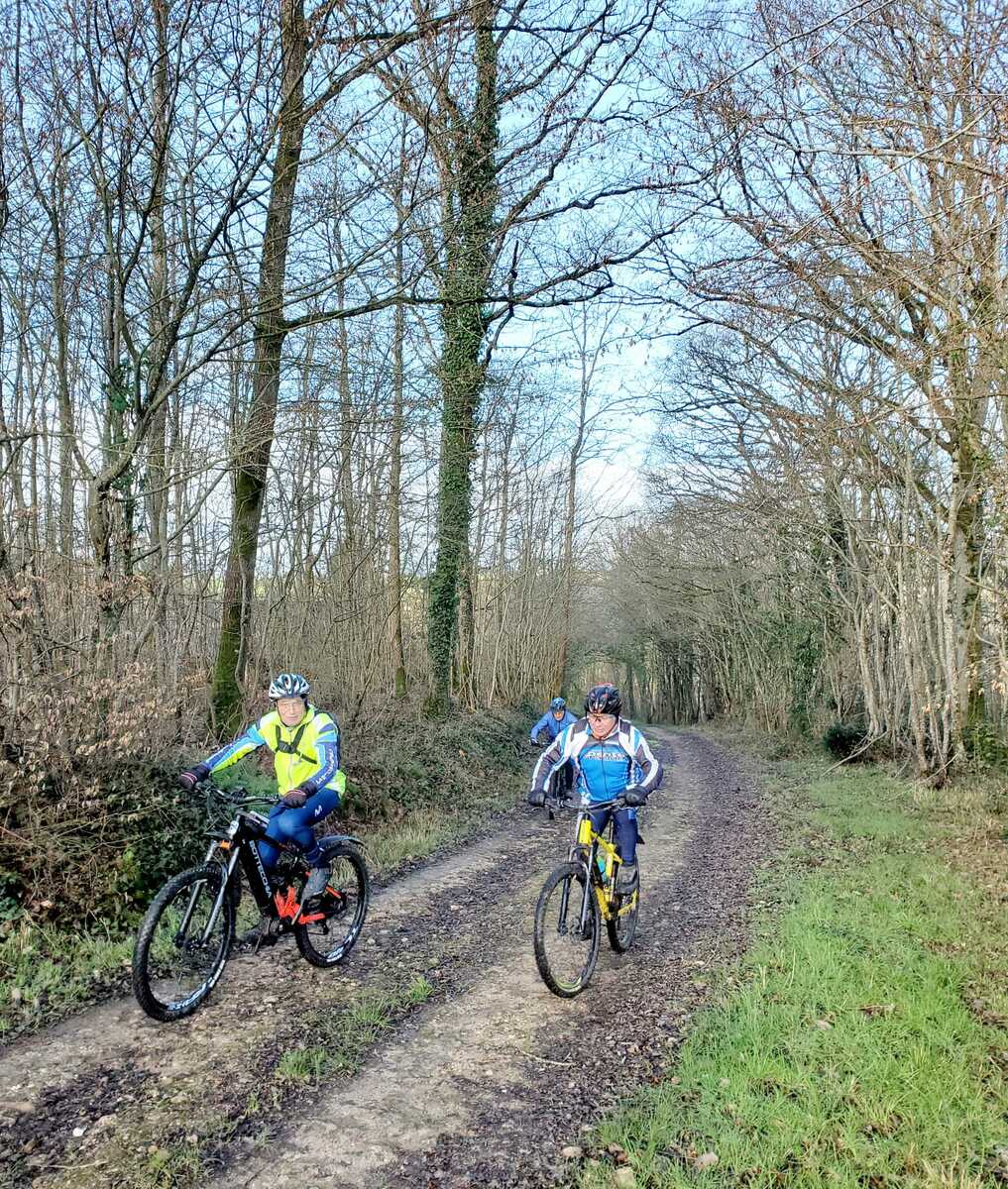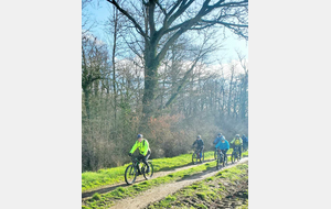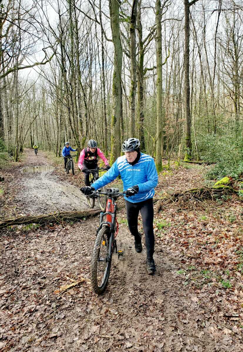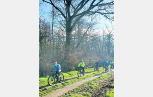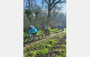 Du soleil ce matin et 18 vététistes au RDV. Une belle balade dans la boue et les flaques ; beaucoup de glissades sur ce terrain bien gras et un finish, tous bien crottés, chez Alain pour lever notre verre à son anniversaire dans la joie et la bonne humeur. Nicole.