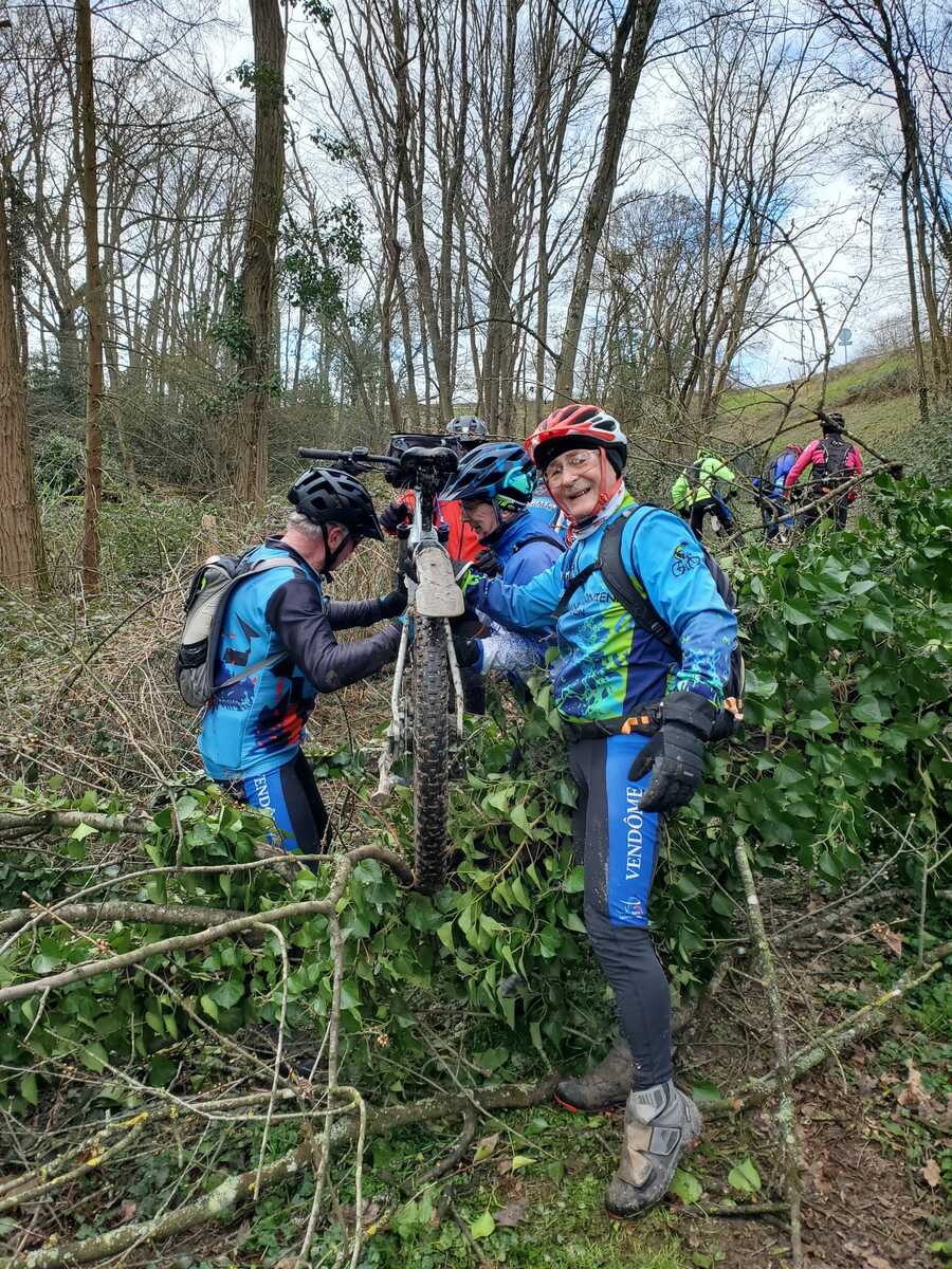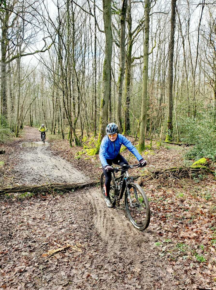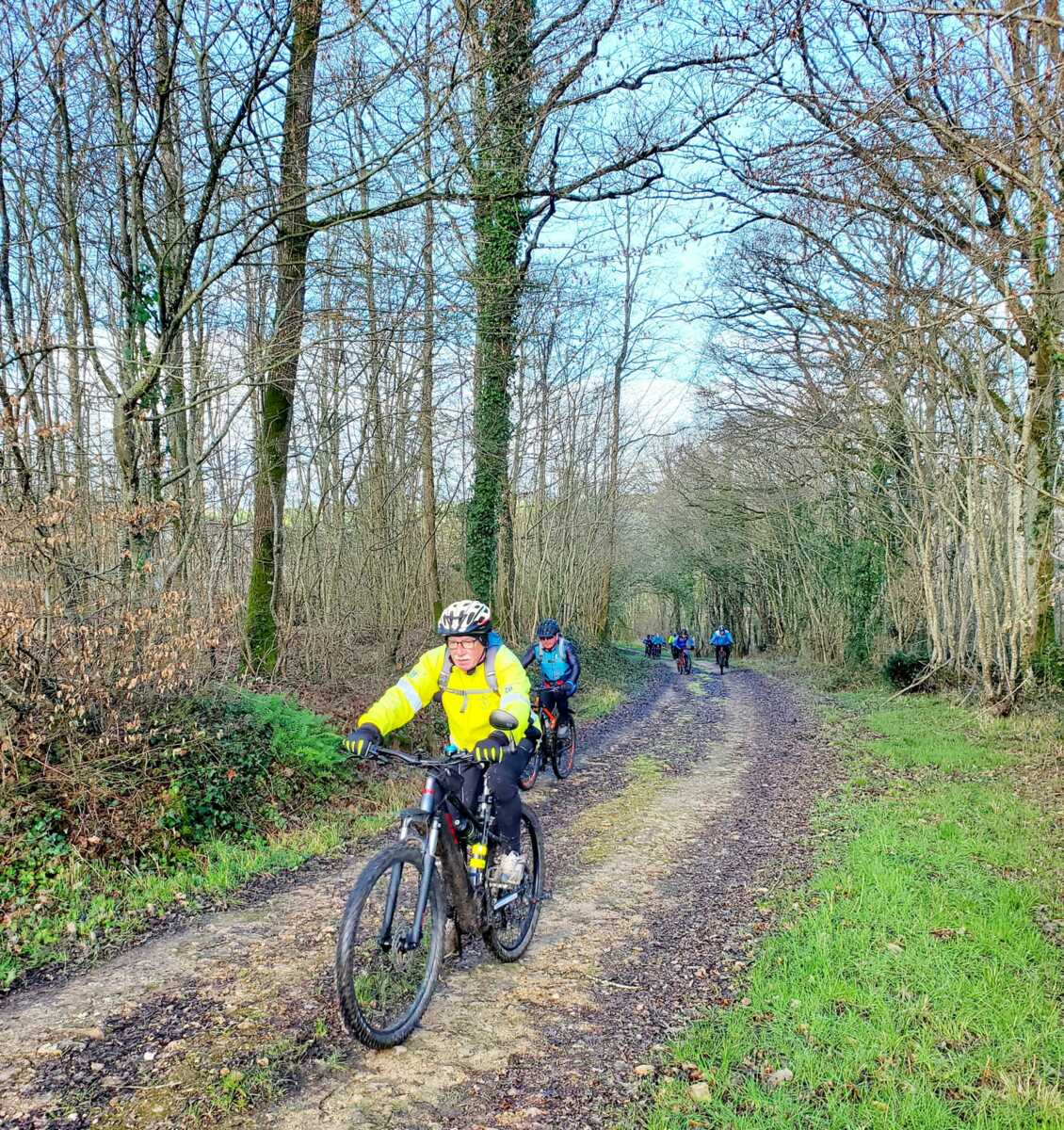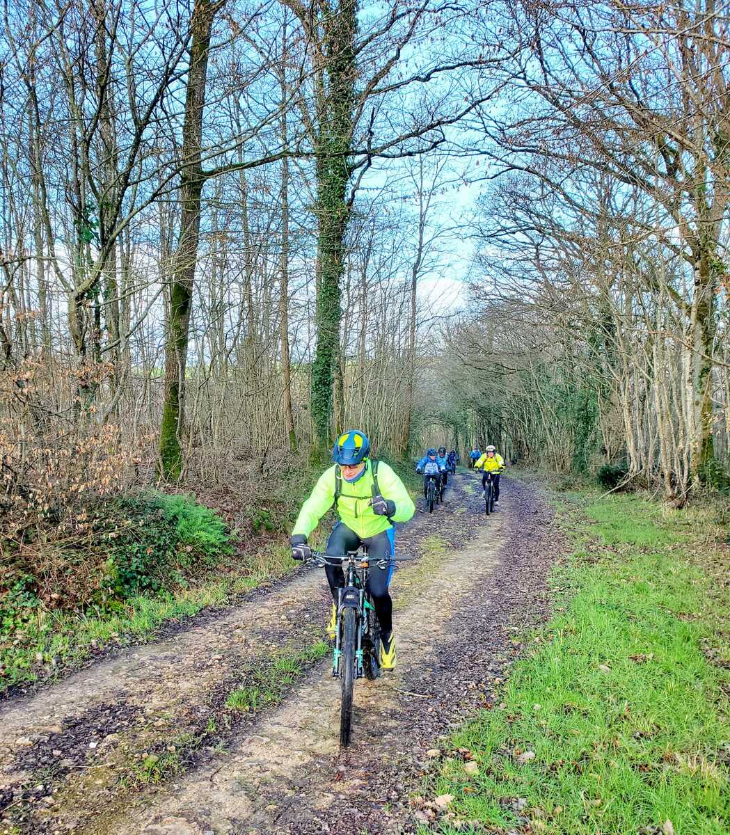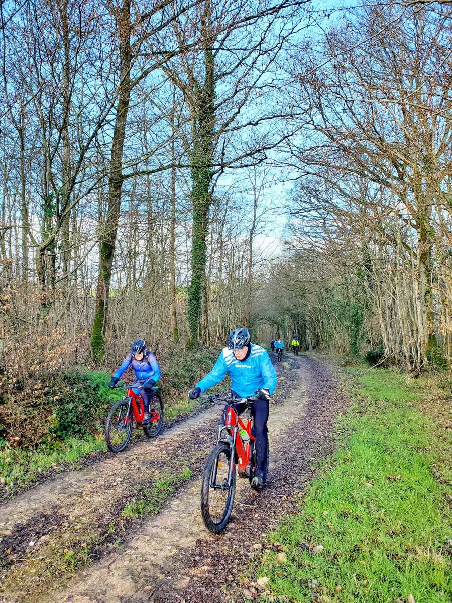 Du soleil ce matin et 18 vététistes au RDV. Une belle balade dans la boue et les flaques ; beaucoup de glissades sur ce terrain bien gras et un finish, tous bien crottés, chez Alain pour lever notre verre à son anniversaire dans la joie et la bonne humeur. Nicole.