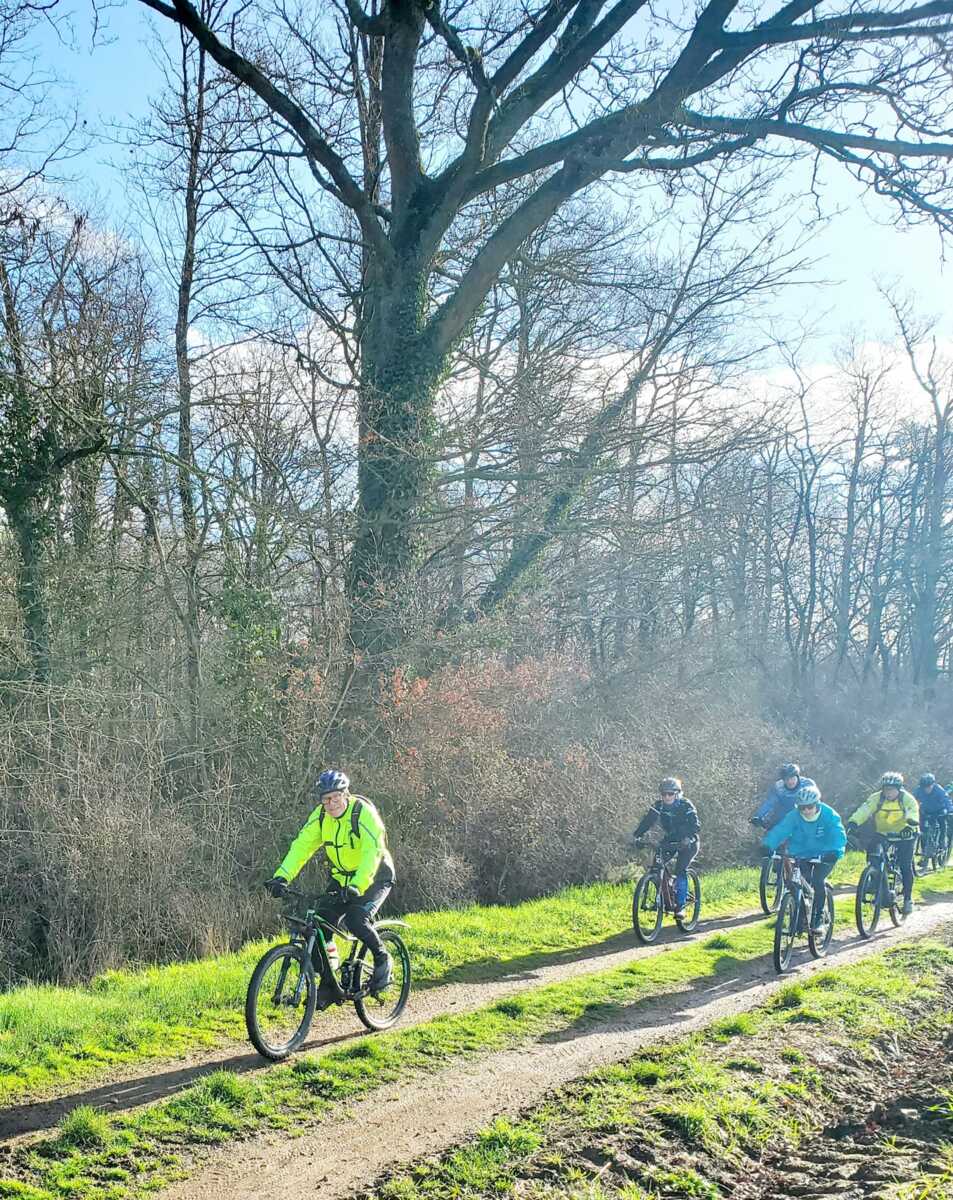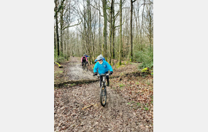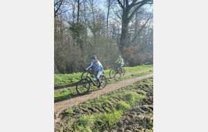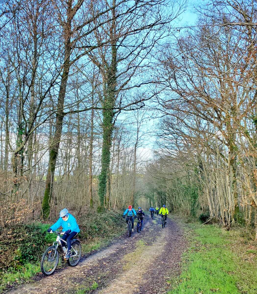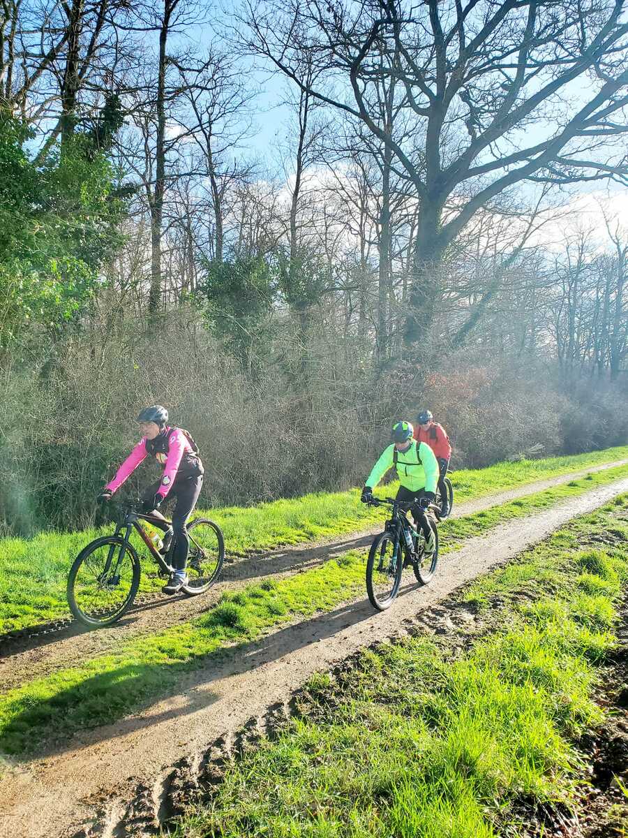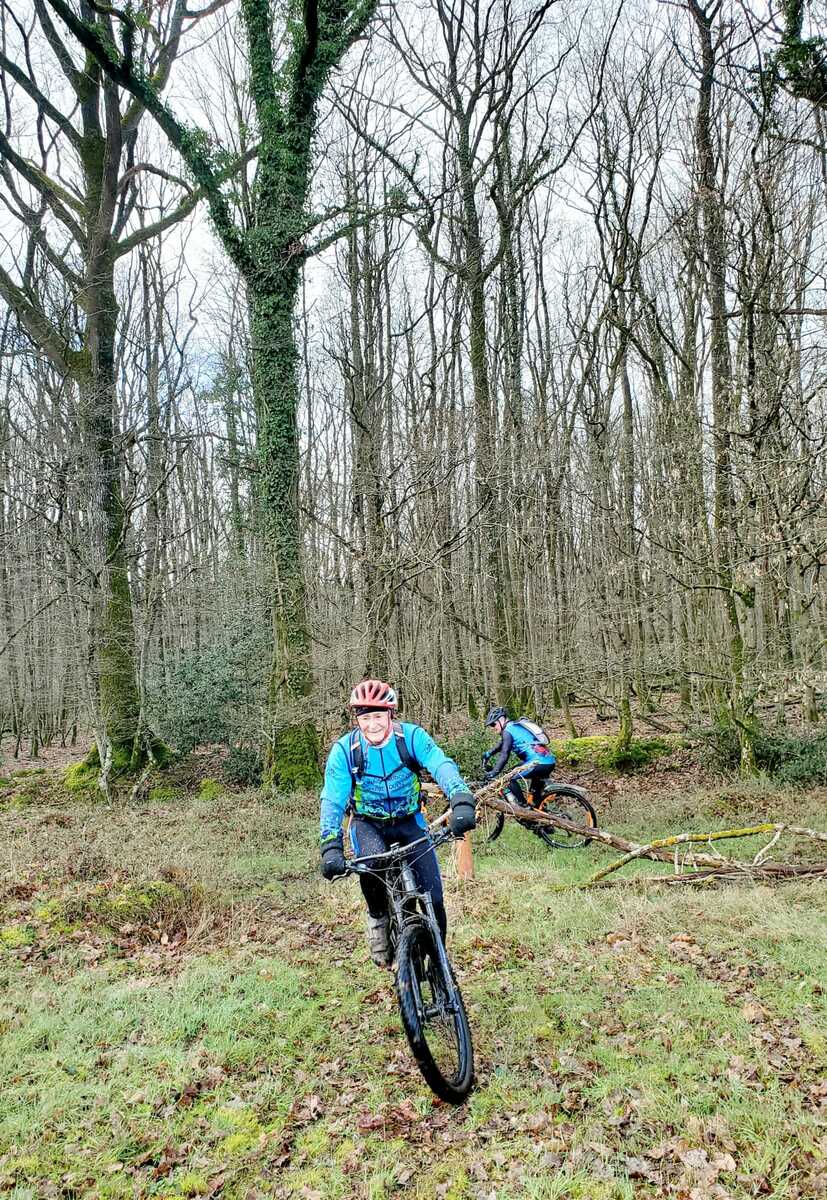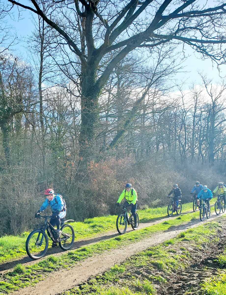 Du soleil ce matin et 18 vététistes au RDV. Une belle balade dans la boue et les flaques ; beaucoup de glissades sur ce terrain bien gras et un finish, tous bien crottés, chez Alain pour lever notre verre à son anniversaire dans la joie et la bonne humeur. Nicole.