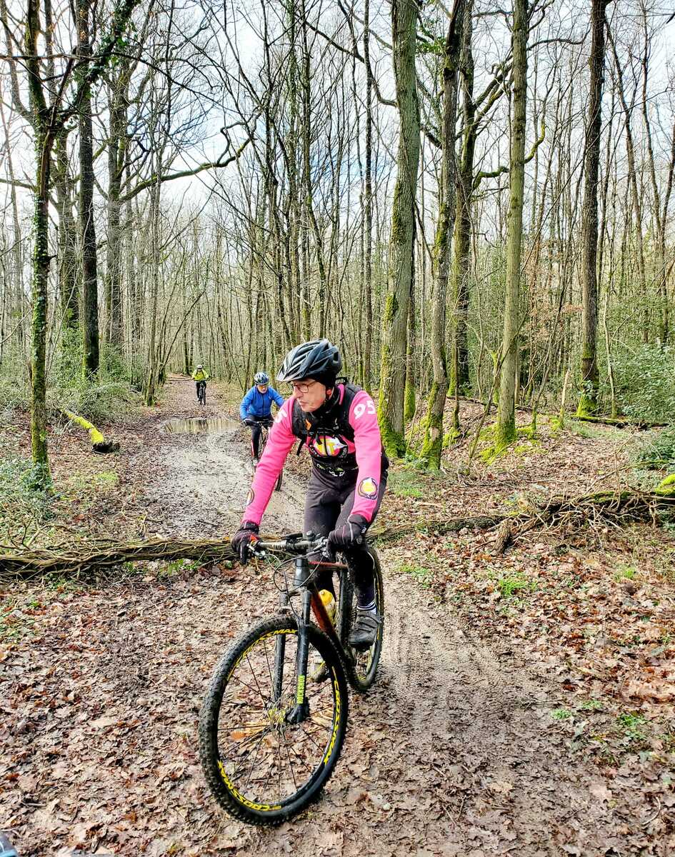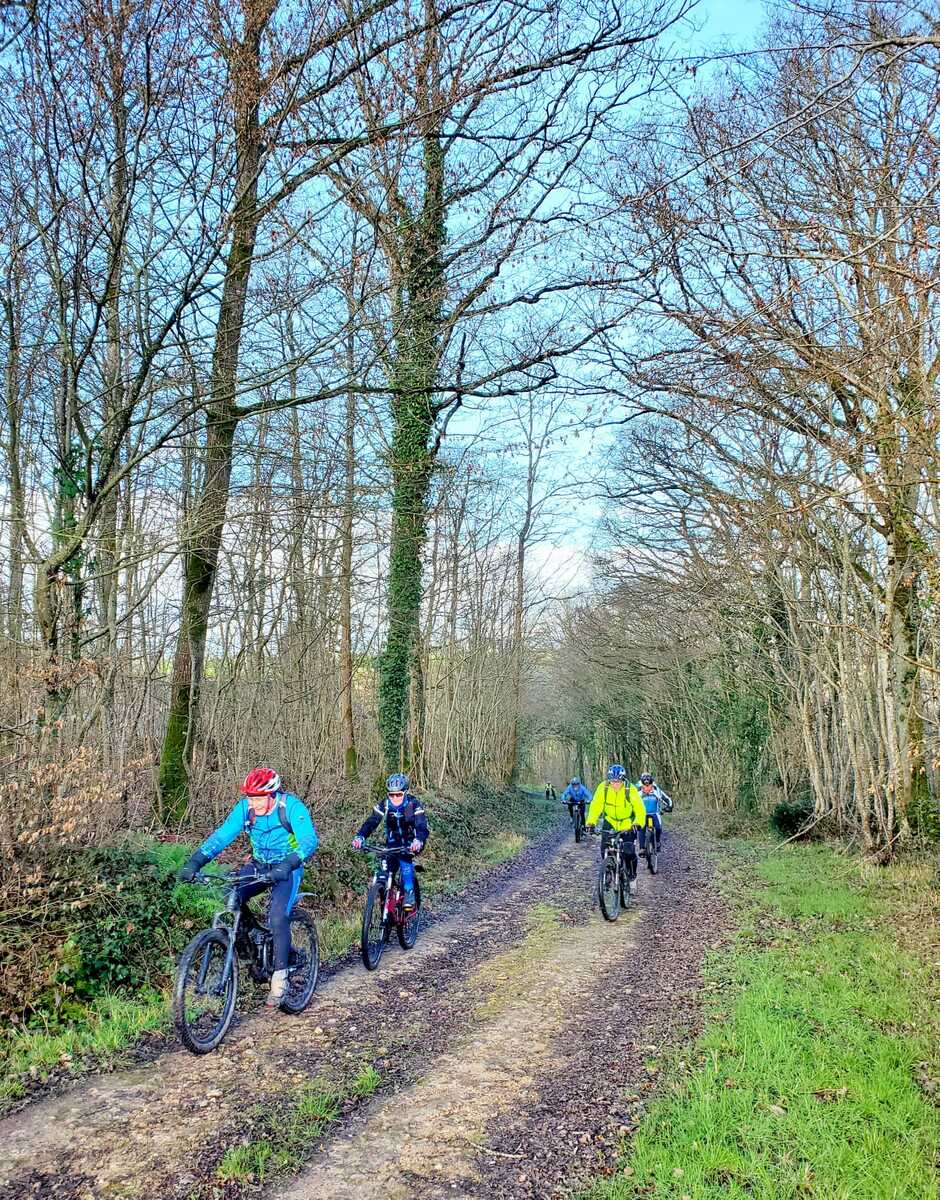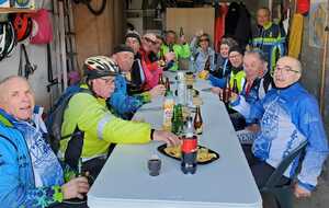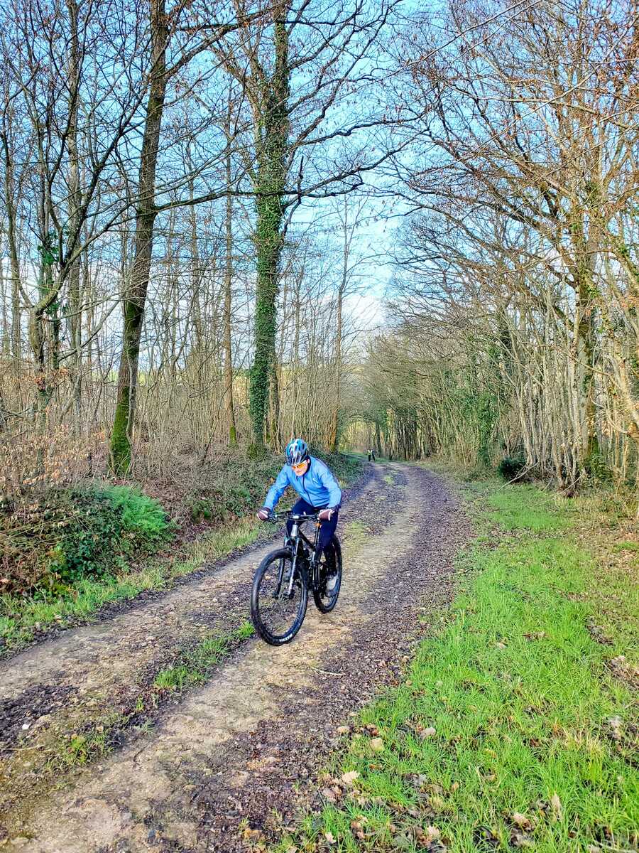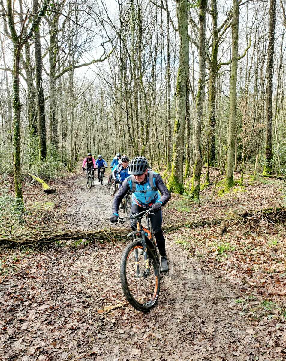 Du soleil ce matin et 18 vététistes au RDV. Une belle balade dans la boue et les flaques ; beaucoup de glissades sur ce terrain bien gras et un finish, tous bien crottés, chez Alain pour lever notre verre à son anniversaire dans la joie et la bonne humeur. Nicole.