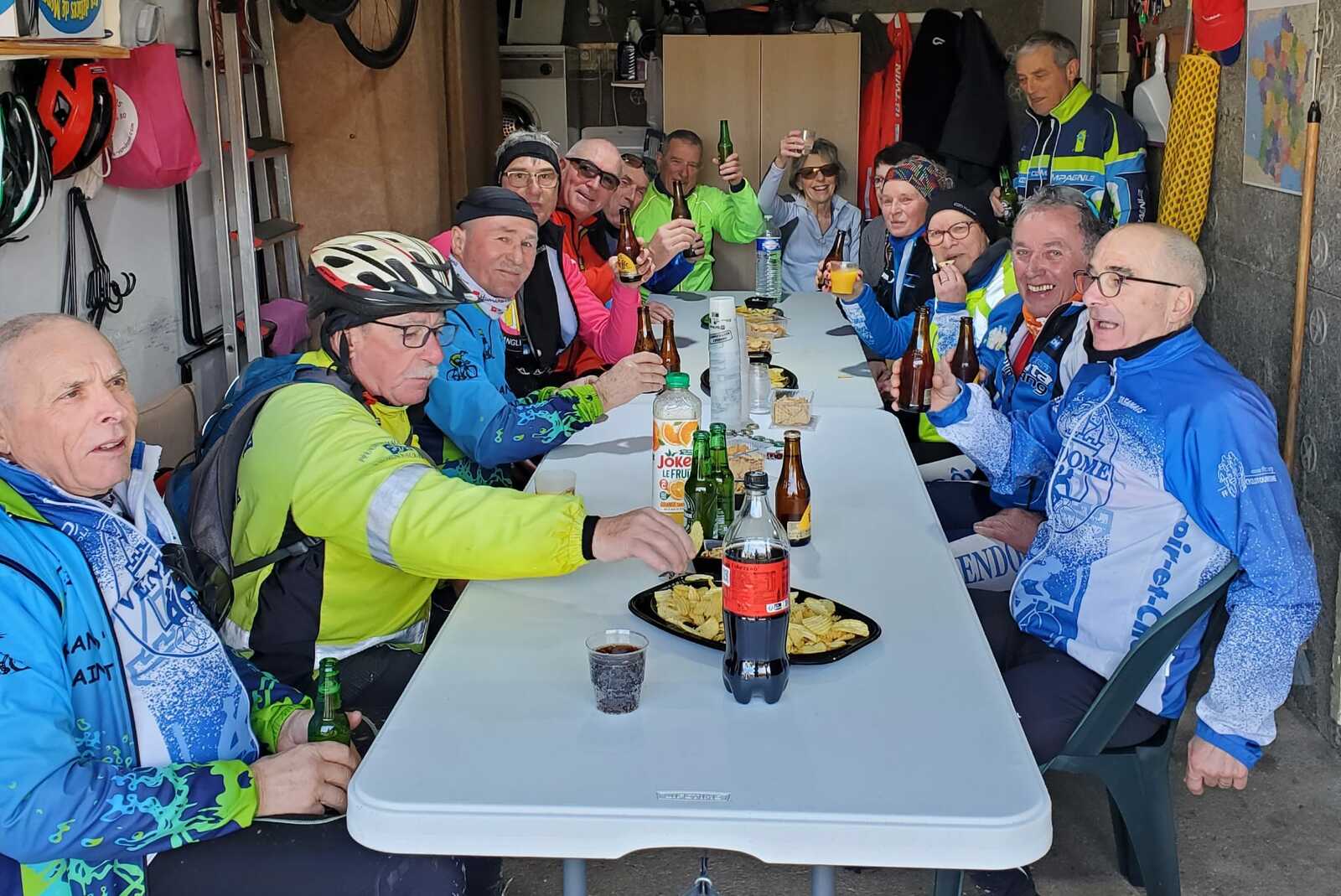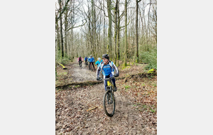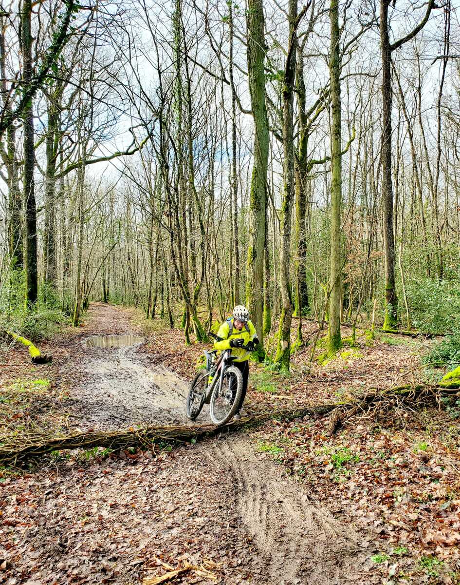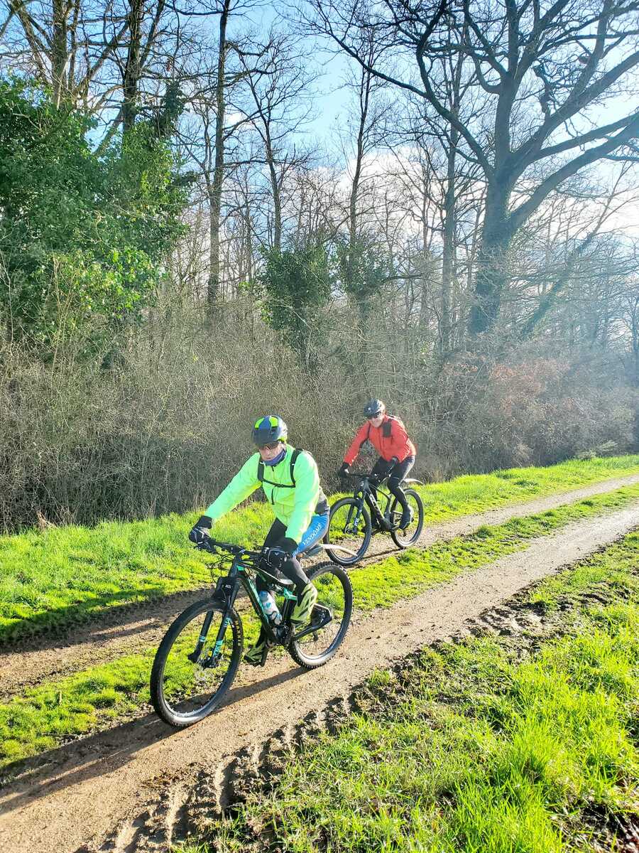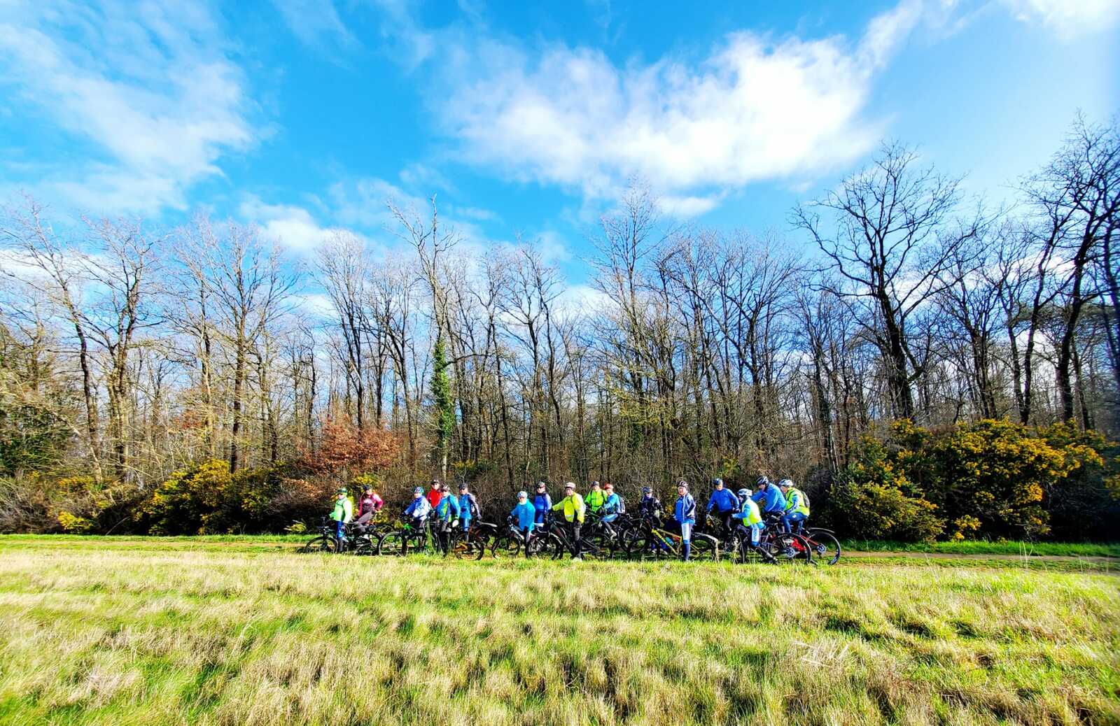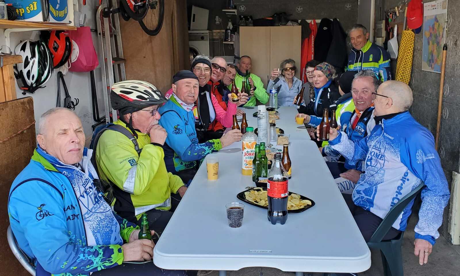 Du soleil ce matin et 18 vététistes au RDV. Une belle balade dans la boue et les flaques ; beaucoup de glissades sur ce terrain bien gras et un finish, tous bien crottés, chez Alain pour lever notre verre à son anniversaire dans la joie et la bonne humeur. Nicole.