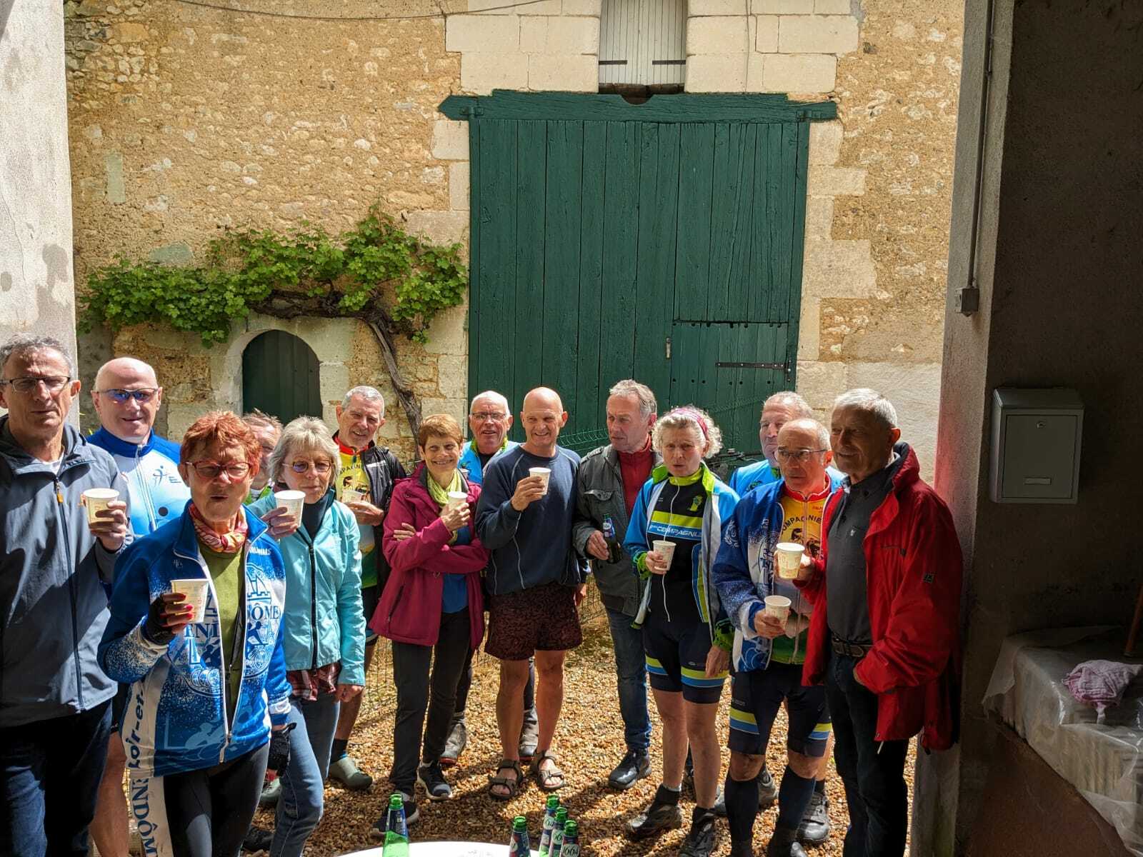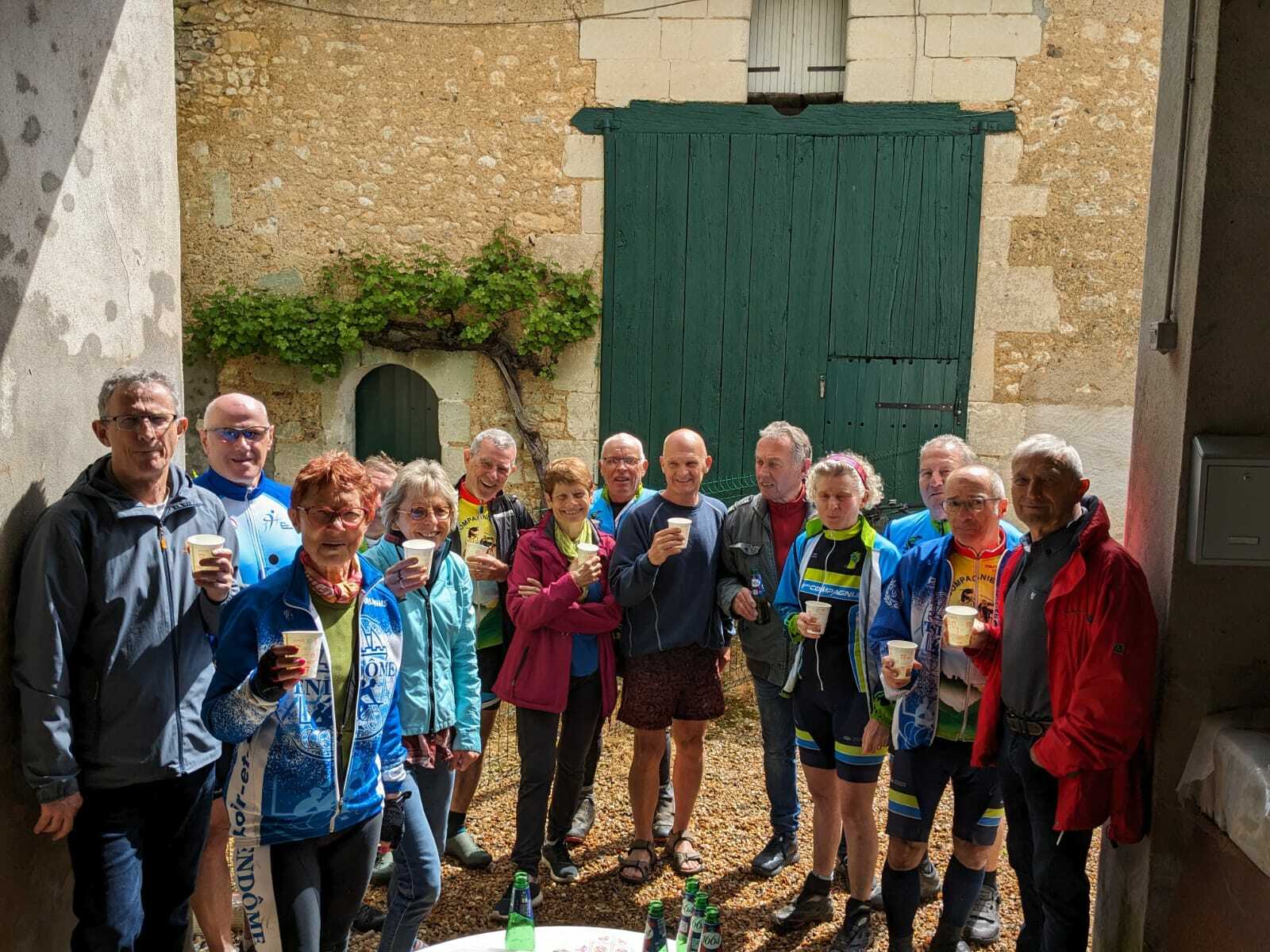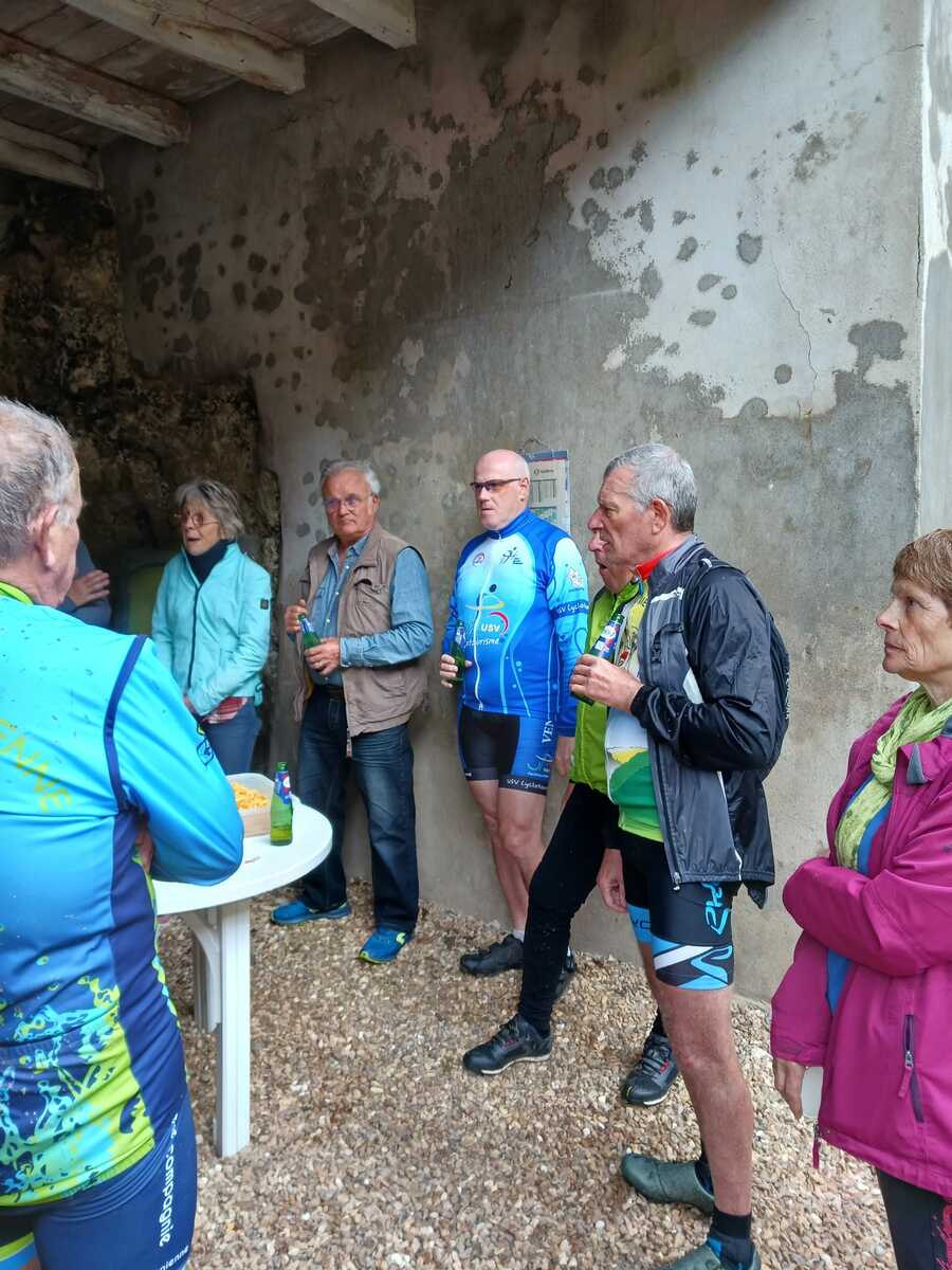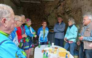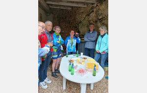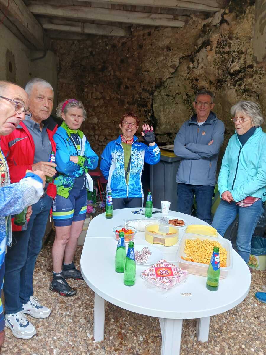 Un petit tour, vite écourté par une bonne giboulée et tout le monde se retrouve pour fêter l'anniversaire de Marie-Jo notre doyenne féminine toujours vaillante!!!!