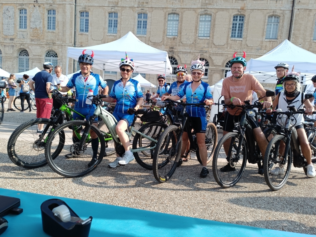 Le dimanche matin, dès 7h les amoureux de le Petite Reine affluent. De nombreux circuits sont proposés, route, VTT et Gravel.Nous sommes 16 personnes à l'accueil pour les inscriptions. 635 cyclos recensés et 39 participants pour la concentration Jeffredo. Les ravitaillements sont gérés par l'USV UA. Tout ce petit monde à l'air satisfait des circuits. Quelques petits couacs aux ravitos mais,comme dit Jérome, nous savons que rien n'est parfait, ni nous, ni nos clients, mais les personnes ravies sont plus nombreuses que les grincheux sans intérêt. Après un bon repas et la remise des récompenses, la randonnée spectacle clôture le weekend avec le tirage de la tombola sur le parking Rochambeau.