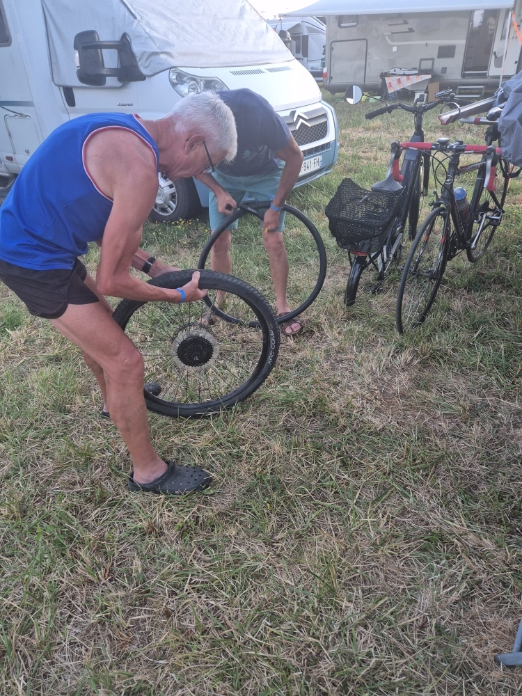 Dimanche le temps est gris et bien plus frais. Ce matin nous sommes partis à 7h30 sur 73 km et 1000 m de dénivelé. A 10H30 on a pris la pluie froide. Le groupe Mousset, Norguet et Pichard ont fait le défilé et ont retrouvé Joël et Chantal,qui sont en location à 10 km de Prayssac. Tout va bien à part quelques surprises à l'arrivée: pas d'eau chaude, donc douche froide, aucune prise de courant etc...Pour la semaine, pire que les gens du voyage. Toute solution est bonne pour trouver des alternatives appréciées. Le groupe est très sympa et convivial. On a tous la même odeur avec le manque d'eau chaude. Pluie pour nous le soir.